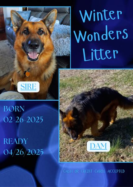 message elongmankuh about this ad Medium-sized, long-coated German Shepherds available! Parents are health tested and UKC registered. Now accepting deposits. These highly intelligent, low-shedding dogs make excellent family companions. Puppies will be vet-checked and vaccinated before going to their new homes. |