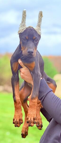 message exceptionaldobermans about this ad I have a female that is 11 weeks old and one that is 8 weeks old. They are $3000 for akc limited registration, and that includes tail dock, dew claws removed, ears cropped, puppy vaccinations, deworming multiple times, heartgard, nexgard, and puppy pack. They are very well socialized and are raised as a part of our family. We have four kids, horses, and cats which they will be raised with and have exposure to. We take them on car rides, have them around all the normal daily household activities etc. they come with a puppy replacement guarantee that I can attach all the details for. My husband is a veterinarian and does a health check etc before going home. I do offer full reg as well for $5000. Any other questions please call or text 5177759669 |