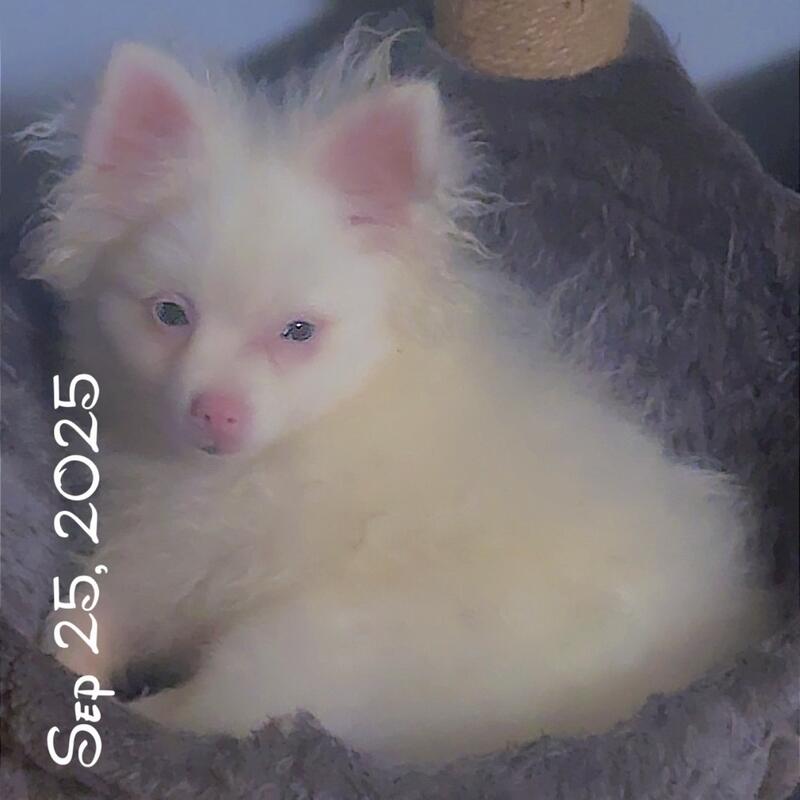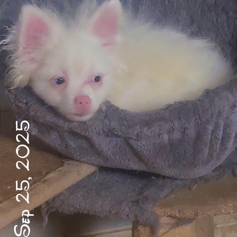 message furluv about this ad RESCUE Pair of Two Deaf Double Merle Rescues Pom Pomeranians Sweet Lively Cuddly Playful Vocal Small dogs and Cat Friendly about half year old Us two siblings should stay together happily for life White blue eye Pomeranian puppies pups pup Well handled Vaccinated and Microchipped Please message us if may be the right truly loving home and plan a time to meet in safety of public ! The fee is 200 per dog so 400 total which is the lowest fee for Pomeranians in the country when rescues normally charge average 500 per pom |