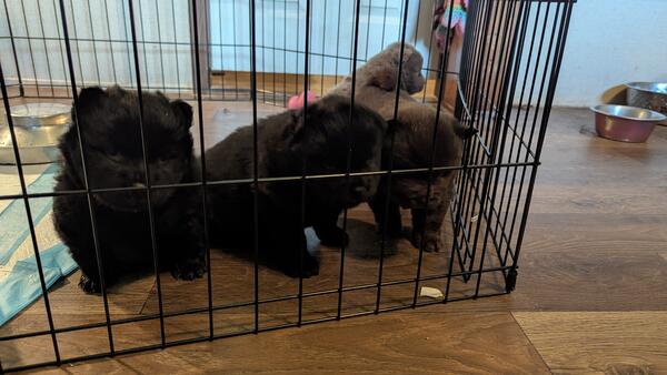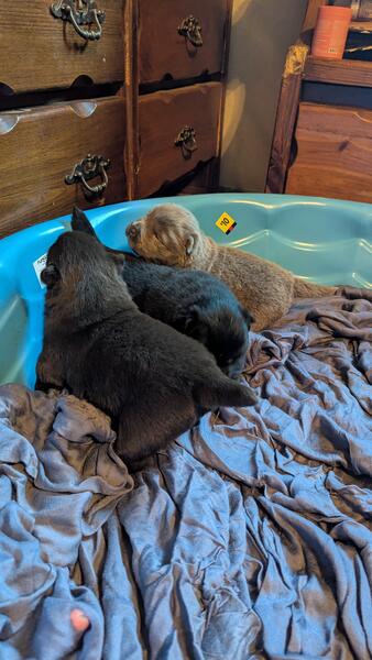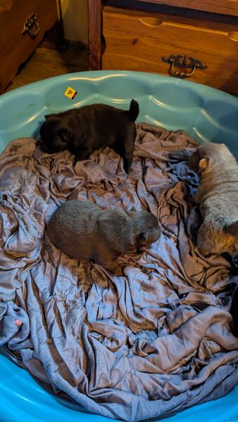 message bullygirl4life about this ad 4 weeks old. No papers. Will have age-appropriate shots and dewormings every 2,4,6 and 8 weeks. Ready to go in 4 weeks. One male all black. One female all black. One chocolate female. Black ones are 600 and the chocolate is 800 |