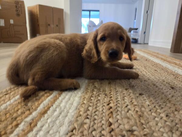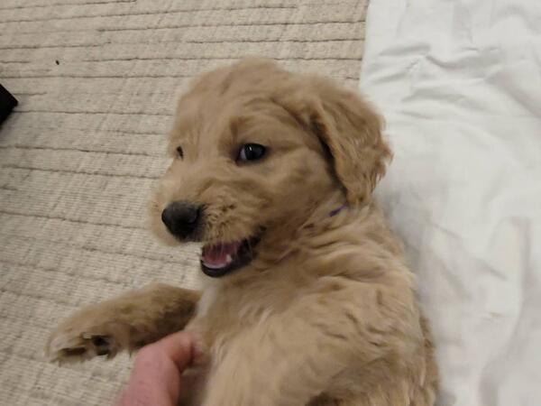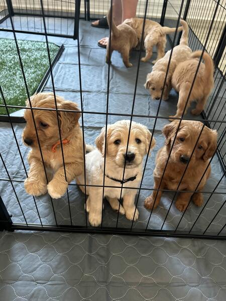 message findingjoy211 about this ad Our babies are ready to go to new and loving homes! We own both parents. Mom (Delilah) is a three year old F1B goldendoodle. Dad (Bodhi) is a 4 year old golden retriever. This makes the breed of the puppy a goldendoodle-retriever which are all low or no-shedding. This is Delilahs second litter and we can happily provide references for and pictures of the pups from that litter. Our dogs are all well-vetted and can provide vet references from our vets both past and current. Our pups will be either wavy or flat coated and we have some of each (4 boys and 3 girls The pups will be medium sized, around 35 pounds. The puppies are now ready to go to their new homes (they were 8 weeks old as of June 11 They will be health checked/cleared by our vet, given all their vaccines, etc. prior to going home. Each pup goes home with a collar, leash, a blankie with their litters scent on it, a sample of their puppy food, and a toy or two. My husband and I work from home, so we spend a lot of time with the pups to ensure they are well socialized. We also are working on potty training and most of the pups are already going in the designated spot! message findingjoy211 about this ad |