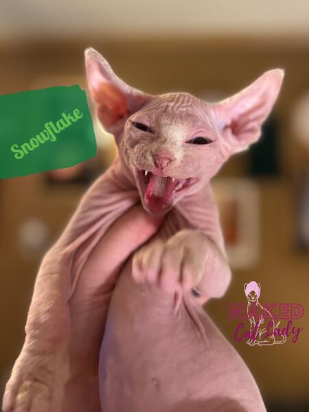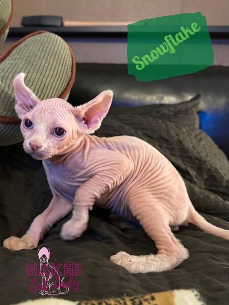 message nakedcatlady about this ad Snowflake is solid white with white furry "socks" and a furry tail. He has STUNNING blue eyes, curled elf ears that get more curly the more excited he is. He is a ball of energy and loves attention! He is going to be a really fun companion. He will be ready to come home at the beginning of December. He will come home vet checked, neutered, with 30-day pet insurance, 12-month health guarantee, & a 2-year HCM guarantee. We have both standard sphynx and bambino (short legs) available. Located in Oklahoma but willing to deliver for an additional fee. Call or text 918-801-6065! |