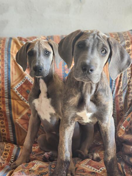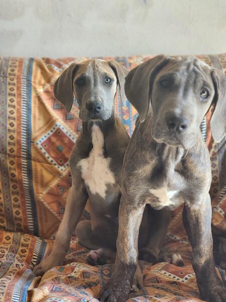 message jdanes about this ad I have raised great dane puppies for about 6 years now. All puppies are raised in my home with kids. All my danes are akc registered. They come with akc limited papers meaning pets. Prices start at 500 go up to 900. My number 16416407896. Feel free to send text and come meet them at my home. My website is J & C danes on facebook so please check it out. Colors I have available are blue fawn girl $500, blue brindles girls $900. First and second shots are done. |