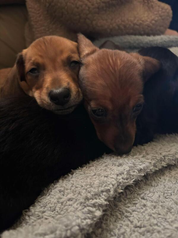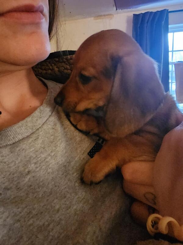 message smmswn1589 about this ad I have one male daschund puppy left. Mom and dad are on site. He has been raised around other dogs, cats and children since birth. He has the best personality and loves to play. He is an extreme cuddler as well. (he is the one on the left in the photo with two) |