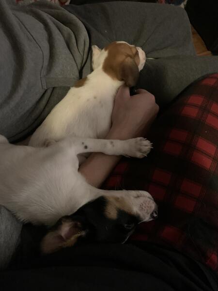message chihuahuarescuemom about this ad Got these two adorable boys as fosters. 8 weeks as of November 17th. Born September 17th, these boys are half Beagle, 1/4 Jack Russell and 1/4 Chihuahua. As of right now theyre being called Maximus (black tri-colour) and Jeff (tan and white) lol They will come with their first set of shots, deworming, bowls, food theyre currently on, and puppy pads. Good with kids, cats, and other dogs. Maximus is more intimidated by big dogs. You can call or text to come visit them through 780-862-2095 |