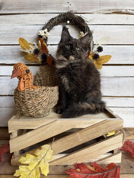 2 beautiful Maine Coon tortoiseshell females available. Very sweet girls, socialized with kids and dogs.