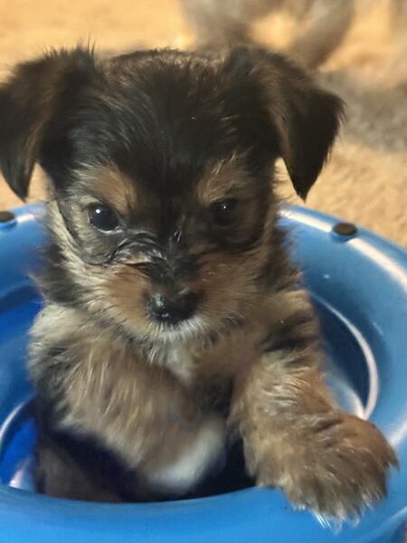 Four male baby yorkies 7 weeks old, vet checked, first shots, dewormed, teddy bear faces
