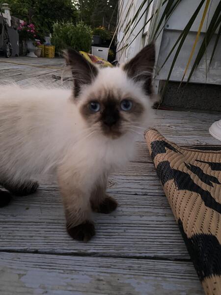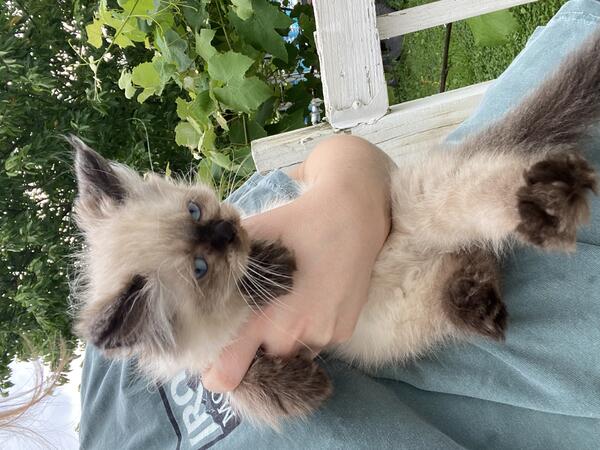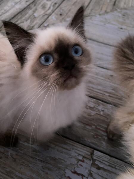 message dkalashnik32 about this ad I have three females available. Two seal point and one blue line point. They are three months old born in April. They absolutely adore people and love attention. They are potty trained and eat dry cat food mix. For more information call or text 6077591964 |