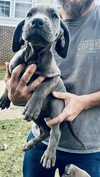 message bbranch761 about this ad We have 1 female and 2 males avaliable. All come with AKC registration, 6 week shots and 6 week vet check. Born September 15th 2025 all are blue. Dad is blue and mom is blue brindle they are about 20 to 25 pounds now. Limited AKC registration but full registration can be discussed. Any questions feel free to text or email. Located near Hickory, NC pick up only 828-851-0062 bbranch761@gmail.com |