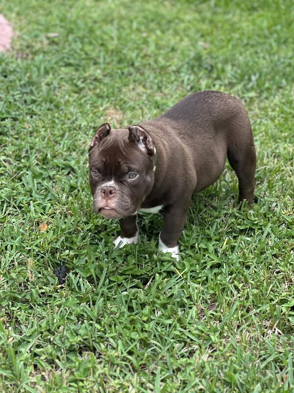 chocolate micro bully full tail . Contact me if interested. 321-537-7118 ABR registered! Need gone asap !