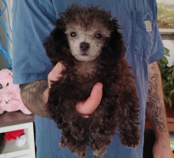 message tgnjg102 about this ad 10 week old silver male. Ready now. He has been wormed, treated for fleas, and received his first puppy shot. He has also been started on grooming. His face, feet and sanitary have been shaved. He is tiny. Will probably be between 3 to 4 pounds as an adult. Started inside on old towel for potty training. He is to small for the doggy door to go outside. If interested send me a contact number |