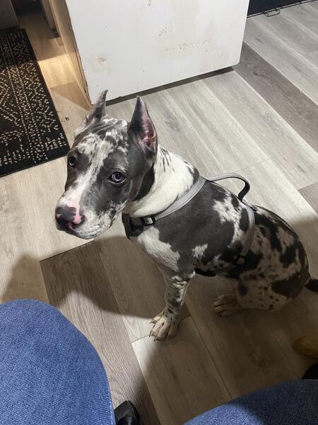 message arianna1 about this ad He is a seven month old Merle, American bully. He loves to play hes very energetic and an overall sweetheart If you are a breeder, he is definitely a moneymaker, and can produce more Merle puppies You can text me at 7744000631 if interested |