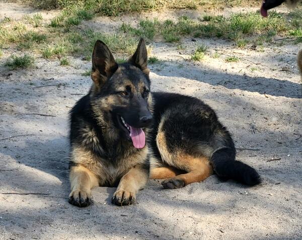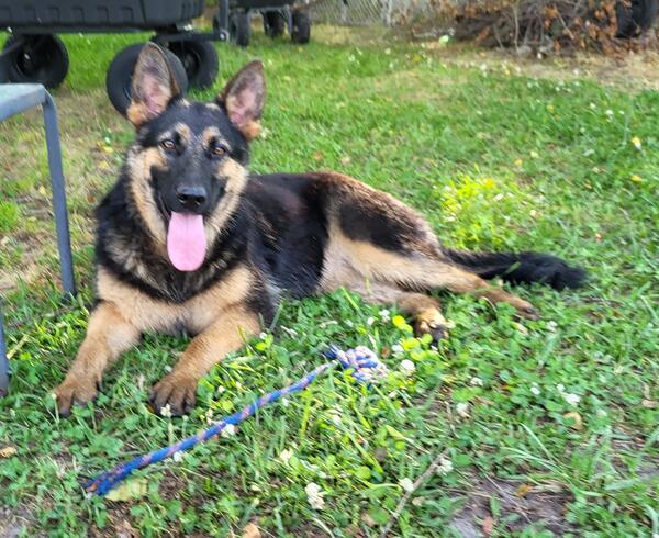 message lzrshng4751 about this ad Akc registered German shepherd female, 1 yo for pet only home, UTD on vaccines and on heartworm prevention. Tesla is sweet, loving, friendly but is a little shy. Dad is Embark tested, DM clear and all other test clear. Parents have great temperaments, sweet and loving and with medium drive. Both parents on site. Text 2five2 7one42five30. Winterville NC |