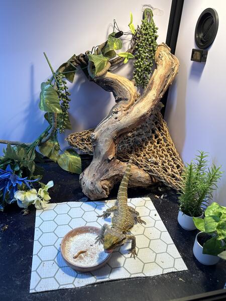message trdvshchwmo about this ad Rehoming Male Bearded Dragon. Good with kids and other animals. His cage is a 4x2x2(120 gallon) biggest cage he needs. He is approximately 1 years old. Cage and everything in cage as well as basking and UVB light. $250 is the price. Non negotiable. |