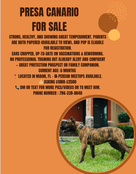 message hasani2123 about this ad Strong, healthy, and showing great temperament. Parents are both papered (available to view and pup is eligible for registration. Ears cropped, up-to-date on vaccinations & deworming. No professional training but already alert and confident great protection prospect or family companion. |