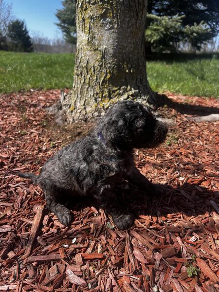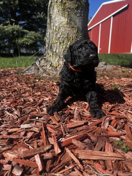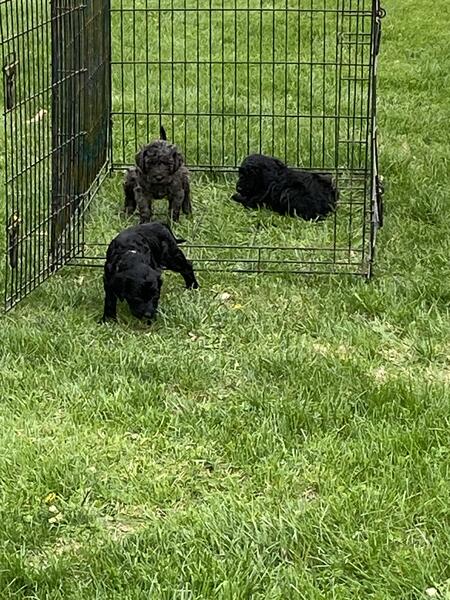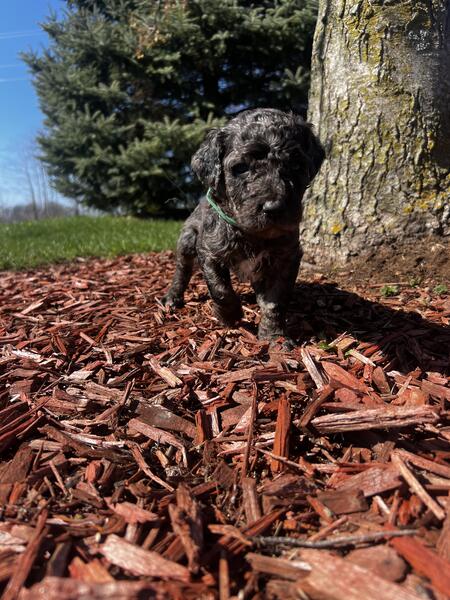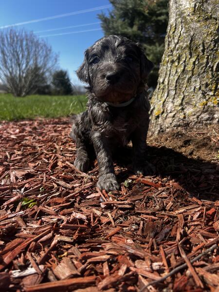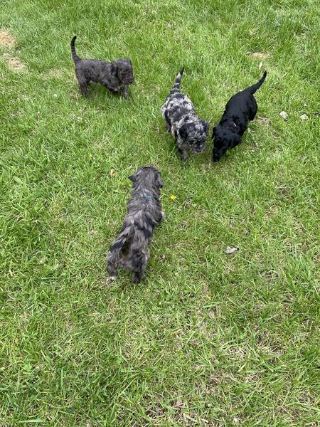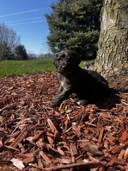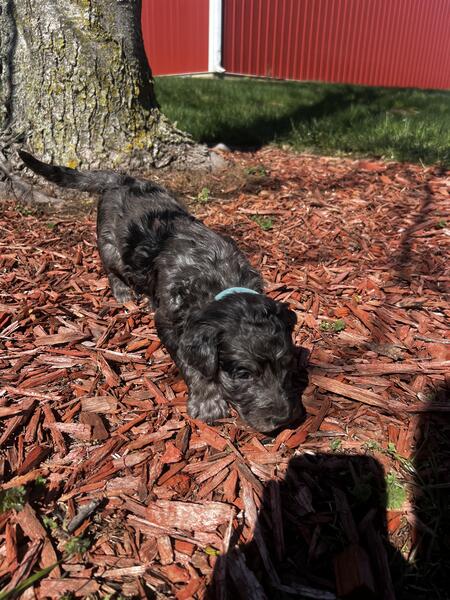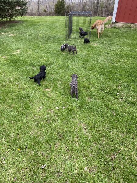 message pdanko about this ad All About Me! F1 Goldendoodles Dam is a Golden Retriever AKC registered. She's absolutely gorgeous and has the most loving sweet personality. She loves playing with kids. Sire is AKC Standard Poodle. He's more laid back in personality and enjoys being a couch potato. These puppies are adorable and will have great personalities. Already outgoing and playful, they will make great pets. Super sweet, GOOD NATURED DOGS Socialized early around small children. Wellness Visit with our vet will be completed before going to new homes. Will be UTD on age appropriate Vaccinations & Wormings. Located in Hymera, In. Contact Peg at (812)201-8285. Blue Merle female $800, black females $600; black males $500, blue Merle males $700. |