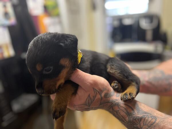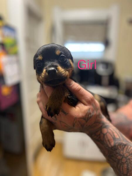 message khall93 about this ad Puppies are ready to go Full blooded Rottweiler puppies have first set of shots and dewormed Tails are docked Mom is American Dad is German Born October 3 2 female 4 males Dad and mom are the last to pictures |