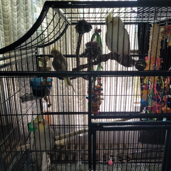 message kpyhcm198 about this ad All around 3 yrs old. Females are mom an daughter. Pieds an momma has pearling as well, she's very pretty an the sweetest out of the 3, their friendly, hand tame to extent. Best as breeders. Come w/ very nice wrought iron cage on wheels, extra dishes, lots of toys and food I have left. Would like them to go to an experienced bird person. I wanted to handfeed babies but circumstances changed. They are very motivated to breed, they just need a nest box an you'll get sweet babies 4sure. $250 |