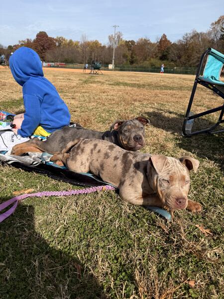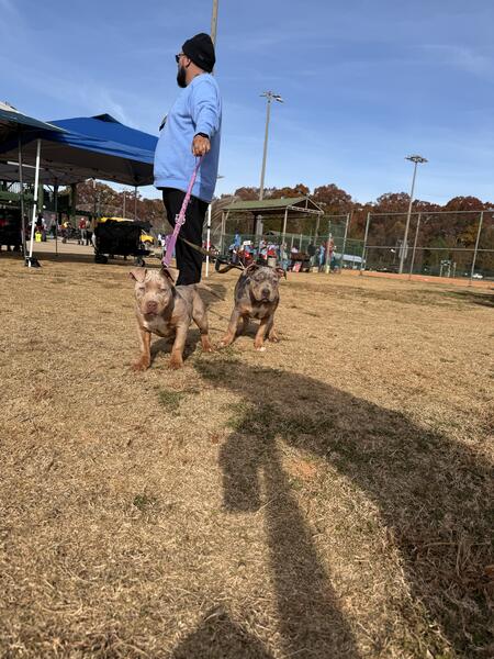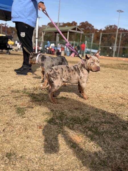 message nicolemurillo about this ad We have 3 Merle pocket size American Bullies pups looking for forever homes. Rehoming fee does apply. These babies are not cheap they have been vet checked dewormed and come with ABKC papers. 1 male blue Tri Merle ( big boy) 1 female lilac Tri Merle ( smallest) 1 female blue Tri Merle ( lightest Merle) We do work with you on expecting payment for puppy with deposit down. We have contracts available for this option. We own the mother ( lilac Tri Merle ) Dad is a blue Tri These pups were born 7-7-2025 they have been inside/outside Eating good and chubby. Great personality and temperament We are located in Concord NC We will travel to find our babies great homes Depending on location a small fee with be added on. |