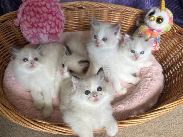 message danharrold about this ad We have a litter born 6/05/25 of four boys (one placed) and (one girl already placed) all bicolor that are ready to go. Pictures are on the website. As they grow the colors will be easier to see as they will darken a little. They all have blue eyes. All litters are registered with TICA and we do sell with a health guarantee. Both parents are negative for HCM and PKD1, tested through UC Davis. These kittens will grow to be big gentle examples of what a Ragdoll should be. The price is $1,200 to $1,500 with a $300 deposit required to reserve one. Let me know any questions you have. Thanks, Dan & Elena Harrold www.tanglecross.com |