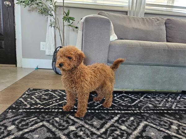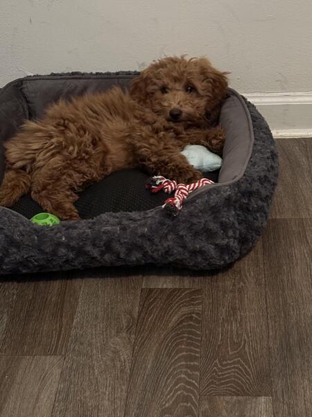 message dwilliams39 about this ad Reddish brown 3 1/2 month old golden-doodle. Wellness exam and first shots completed. He is family and most importantly kid friendly and unbelievably smart! Very energetic, fun and is the sweetest pup! Due to our work schedules we cant provide him with the right care and thats what we want for him! Will come with everything we have bought for him. Brand new crate and bed, training pads, food and treats and more! |
