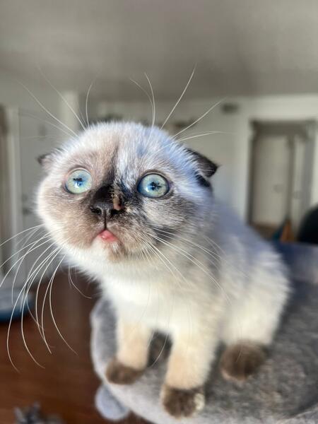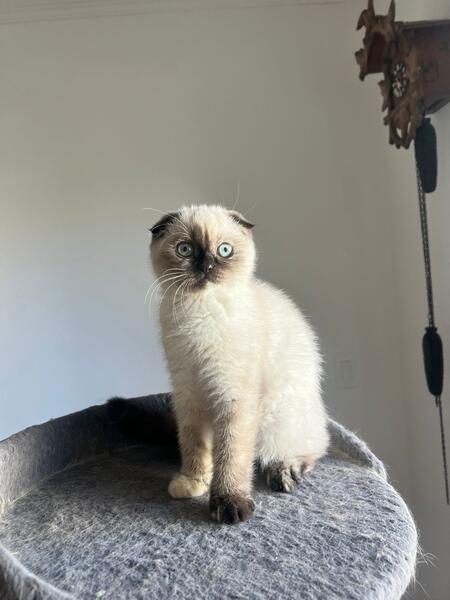 message lauraglez1 about this ad We have three beautiful female Scottish Fold kittens looking for their forever homes! Scottish fold $2000 Scottish straight $1200 Purebred Scottish Fold, 3 months old, alredy eating solid food , litter trained . These girls are perfect companions affectionate and playful with the classic round face and big eyes of the Scottish Fold breed. Located in Santa Clarita Pick-up or delivery available (depending on location) Message me for more info, pictures or to reserve your kitten |