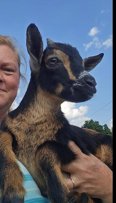 message cdular about this ad Male Goat - wethered DOB June 2024 Nigerian dwarf. Mostly brown and black with speckled ears Buck Dad has blue eyes mostly buff color Dam Mom small all black 100 Mini Nubians (Nubian Nigeran Dwarf cross) F1 2 wethers 100 and 1 doe 200 DOB April 6 all have horns Boar cross Nubian white with Brown head wether horns 100 March 10 DOB Mar 10, Bottle Baby, Would make great 4H Project Nubian cross Boar Doe Black 200 All had CD&T Scrappie tags All have horns so cute! loves to be held. Up to date on Shots |