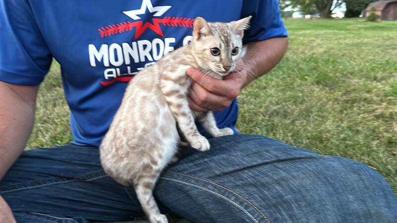 message kyco60 about this ad Silver Snow Rosetted Mink Bengal Kitten Available DOB 5/20/24 TICA $800 OBO TiCA registered, vet checked, vaccinated, pet contract, heath guarantee 641-344-3429 www.iowakurimskibengals.com |