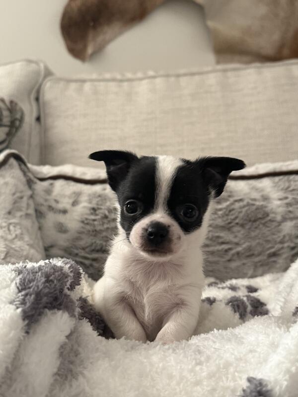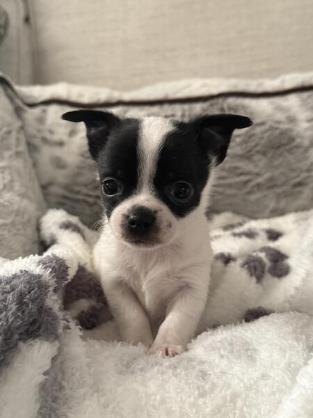 message hvnld8098 about this ad Ckc male chihuahua puppy, mom is short haired and dad is long haired. Puppies should weigh 5-6lbs. Only one male left black and white spotted. Puppies will have age appropriate shots and dewormings. Located in Abingdon Va call or text for more info 937-829-1481 |