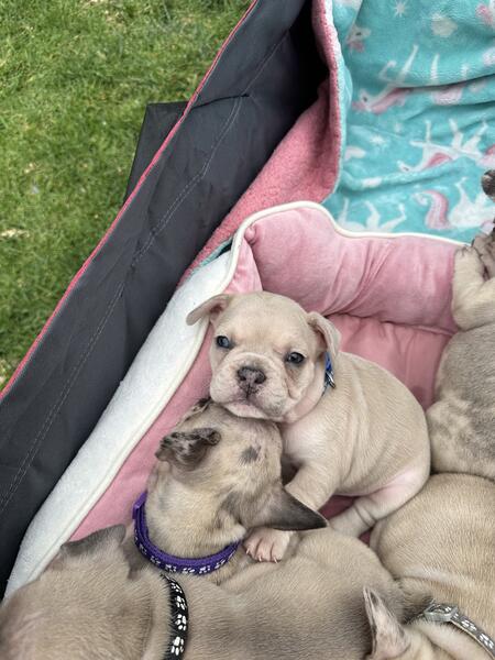 message chavezkarissa94 about this ad LOCATED IN LOS ANGELES 90242 We have 4 beautiful lilac merle Frenchie puppies ready for their forever homes soon! They are currently 6 weeks old and have already received their first round of vaccinations. Available Puppies: 1 Female 3 Males All pups are healthy, playful, and raised with love in a family environment. Lilac merle coats are rare and stunning these babies are sure to turn heads! Rehoming fee applies. Serious inquiries only, please. Message for more details or to schedule a visit! (562) 618- 7074 Josie |