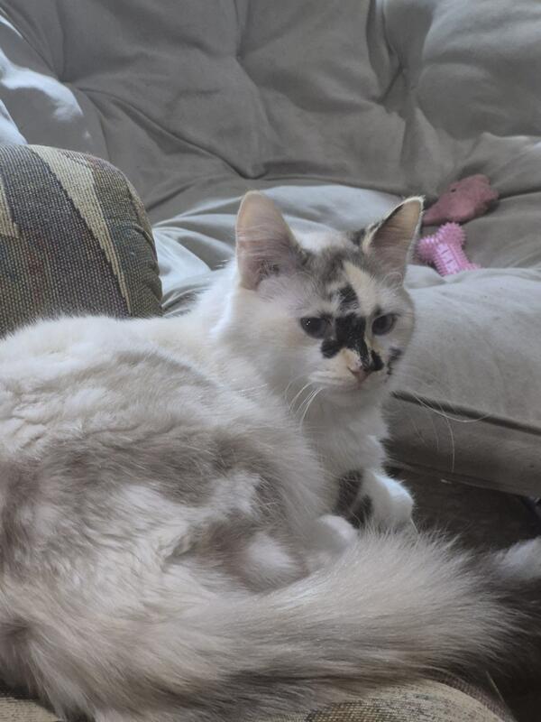 message rblhrtgsv about this ad Hi i have a 6 month old calico female that moms siamese and dad is maincoon mix. She only has color on head and tail the rest is white. Not fixed has been microchipped tho. Supper friendly loving great with kids cats and dogs. Asking 100 obo plz txt 9892908090 pics of mom who is siamese and then pic of kitten |