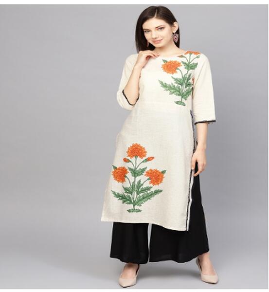 message rohinee about this ad Product Code: 9626007 Off-White and Orange printed straight kurta with thread work detail, has a round neck, three-quarter sleeves, straight hem, and side slits The model (height 5'8 is wearing a size M You'll love the elegant design and fit of this stunning kurta from W. Dress up for your next family event by pairing this off-white piece with your best Kolhapuris and simple jewellery. 88% Cotton, 12% flex Hand-wash httpsmyntr.it/nUfeClV |
