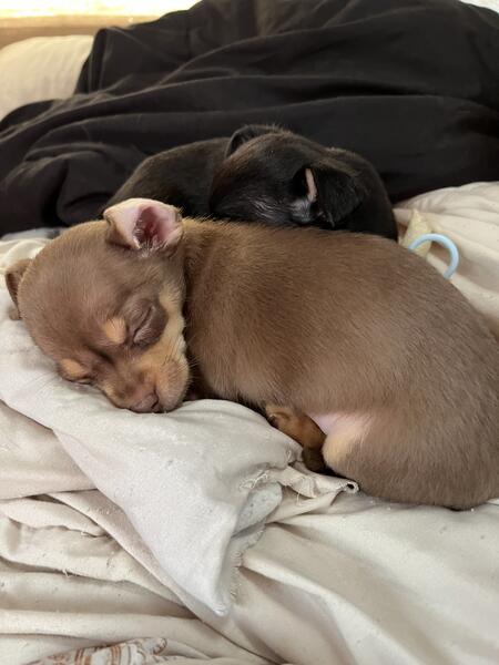 message caitsidhe about this ad 3 purebred Chihuhua puppies will be 8 weeks on 11/28/25. Could also hold for Christmas. One female Red and Tan. 2 males black and Tan and one mostly tan with black markings. These guys are tiny and will stay around the 4lb mark when full grown. Super sweet, friendly and outgoing. Love to snuggle. Raised underfoot with kids, cats and other dogs. |