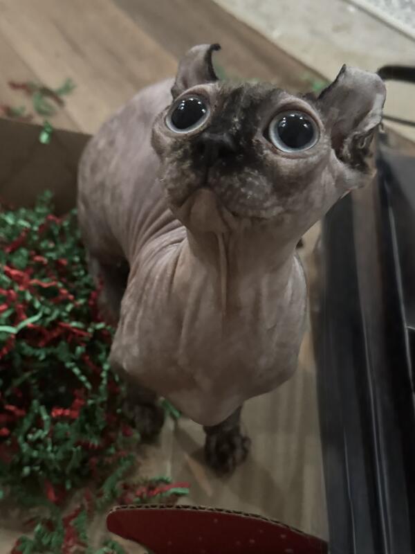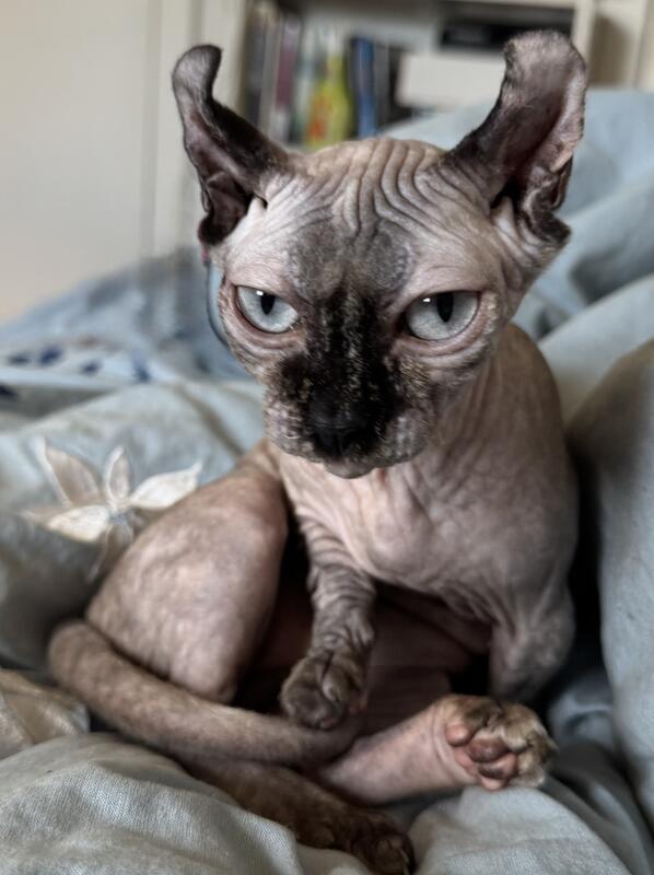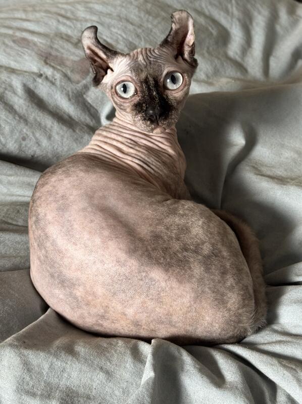 message mamamoe about this ad Meet Bettye Boop aka Morla the tiny 1 yr old Dwelf! I kept her back for my program but have decided to make her available for adoption since Im not currently breeding and must downsize for upcoming move. Shes is healthy and felv/neg, UTD on vaccines, including Rabies certificate, with 3 healthy vet checks. Including recent one in January. She LOVES music and will come running if you play it loudly or sing and join you! Other than that shes not a big talker and is relaxed but playful-not demanding. She gets along with everyone and is so sweet and easy to have around. Just an excellent natured adorable tiny sweetheart. Will make you laugh daily with her fast ferret like run! Her mom is a dilute tiger Calico Elf and her dad is a black Bambino so she is a beautiful dilute tortie. She has huge very light blue gorgeous eyes-no AI here! Shes is accustomed to nail trims and ear cleans and doesnt need regular bathing and she has perfect skin that is naked, but not oily and doesnt get dirty. No allergies and eats a variety of kibble, canned, and freeze dried raw-her favorite are purr pops! Shes ready to join her new family and fill you with joy and laughs for many years to come! Shes a peacemaker and Ive never even heard her hiss in her life. Talk to you soon about adding this baby to your tribe! message mamamoe about this ad |