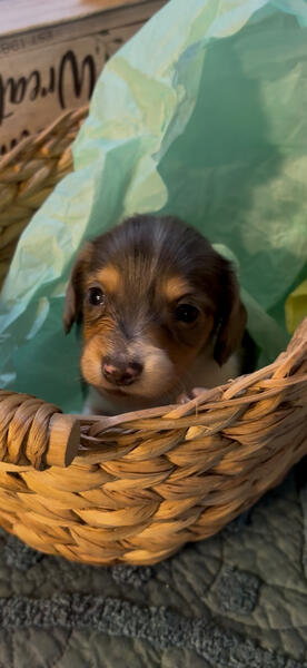 message rhldrmn1754 about this ad We have a beautiful litter miniature dachshund They are all males AKC registered. Both parents are on site. Both parents weigh under 10 pounds puppies have been back checked. They are currently on vaccines for parasite prevention currently seven weeks old socialized daily if you are interested in any of these puppies, please call or text 931-287-6736. 2 males left |