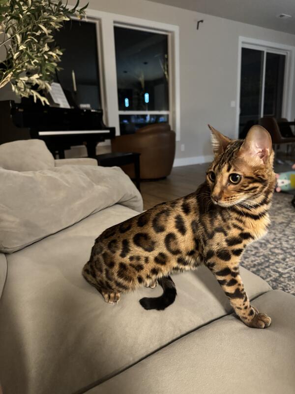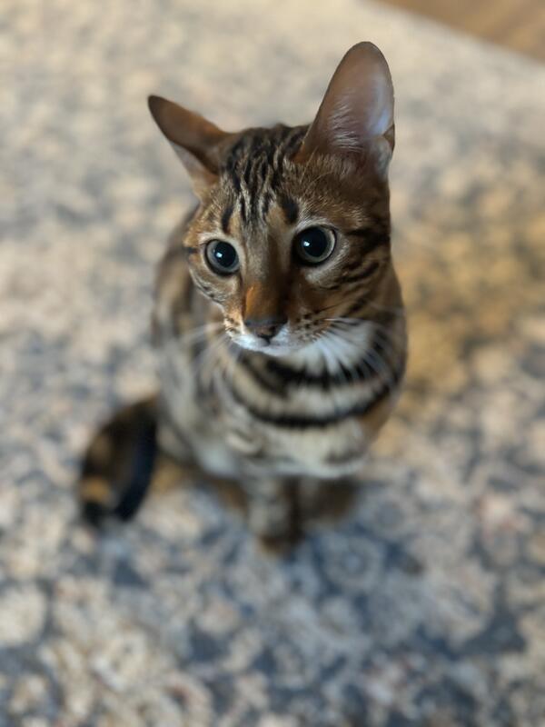 message gtgml6326 about this ad I have a Female bengal cat that is still under one year old. She came from a reputable breeder, 7th generation purebred. I got her for my kids but they dont seem to be interested in her, she needs a different home where she will get the attention she needs. She is well behaved, and has always been an inside cat. She hasnt had any kind of other cat interaction since the day we got her. I paid more than twice the amount Im asking. Reach out with an offer. Kittens are available fiveO3three8Oseven2for7 |