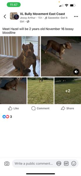message jessy about this ad Bossy blood line raised in home with our children great temperament she is 2 yrs old and had 1 liter we are moving into smaller place and dont have the space that is sufficient for Hazel she already has her rabies shots and has her ABKC PAPERS come with her food and bowl I want her to have a great home she loves the kids and all the attention come meet her if you want pet home only $700 no papers . Pet home only with papers $850. Breeding rights with papers $1000 |