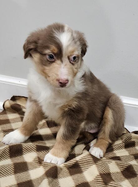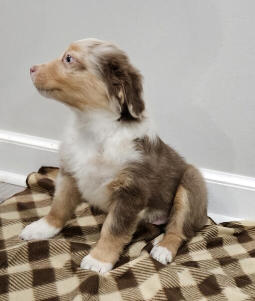 message fshnklluonh about this ad Chocolate was the smallest in the litter she will be standard size she is chocolate tri merle with a half tail she loves to cuddle and loves affection dad and mom are in pictures dad is xl blue tri Merle call or text at 7177524657 |