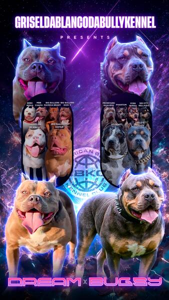 message griseldablanco1 about this ad XL American Bully Puppies ABKC Registered 1 Male & 5 Females Born May 30, 2025. Big, healthy pups with top tier bloodlines. Sire is Bugsy (120lb Tri Color, grandson of Swag Kennels Phantom Dam is Dream (100lbs of muscle Lilac Tri Merle, Grand daughter of the legendary Big Ballers Dom P Bloodlines include Phantom, Sultan, Khaleesi & more. Thick bone, dome, structure, blue eyes, and calm temperaments. Insane colors like Tri, Merle, Blue, and Fawn coats. Family raised, ABKC registered, DNA cleared. All pups have up to date shots, dewormed, and passports. Puppies start at $2500 Message for more details - 236-862-4616 IG: @griseldablancodabullykennel FB: griseldablancodabully |