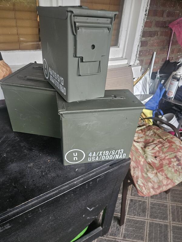 message damagicx about this ad USED PA19 SMALL AMMO BOXES PA19 $5.00 - 3 FOR $10.00 USED SMALL AMMO BOXES Painted box 10.00 each USED M458 LARGE AMMO BOXES PA19 $8.00 - 3 FOR $18.00 USED LARGE AMMO BOXES |