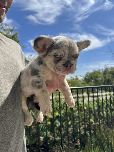 message dnlbarajas91 about this ad Lilac Merle Fluffy French Bulldog Male 9 Weeks Old Beautiful lilac merle fluffy French Bulldog male with striking blue eyes. He is 9 weeks old, hand-raised in a loving family environment, and ready for his forever home. Up to date on all vaccines and vet checks. Full AKC registration included. Price: $3,000 Pickup available in San Diego, CA. Shipping or delivery available at cost if needed. For more information, call or text Daniel at 619-929-9339 Follow us on Instagram: dannyboogieb |