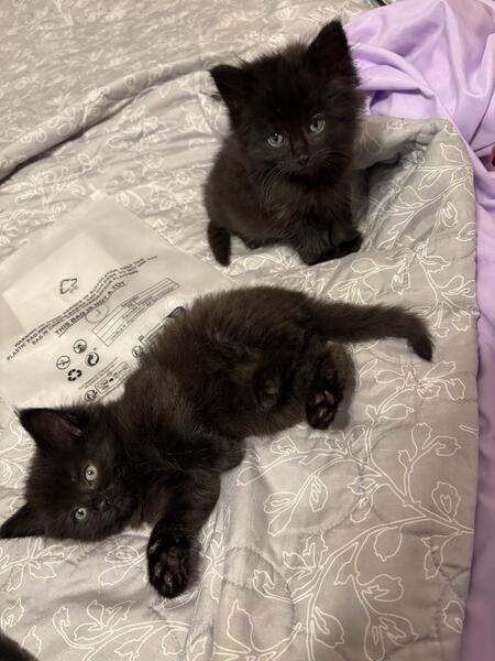 message briannag1196 about this ad Update grey n white female n black fluffy male found a home. These kittens r mixed. They were found n my friend bottle fed them since they were a few weeks old. There r 2 boy black fluffy kitten n 2 black fluffy girls. One grey n white girl. Asking a 60 rehoming fee to go back towards supplies n to ensure they go to a good home. |