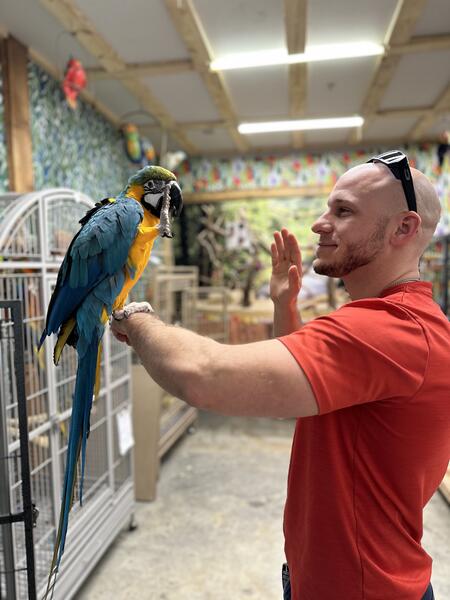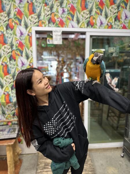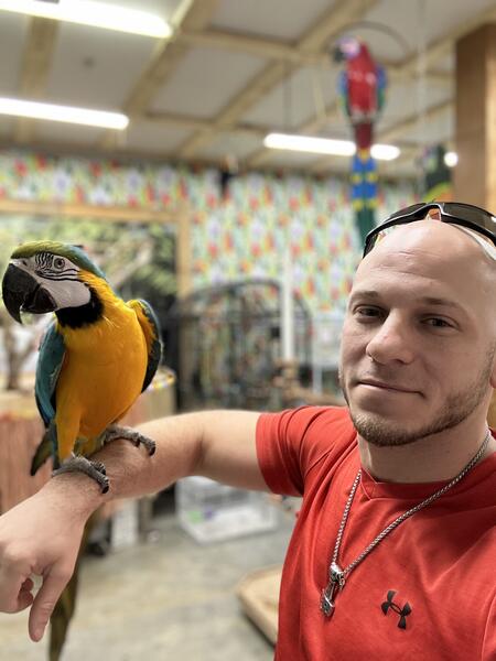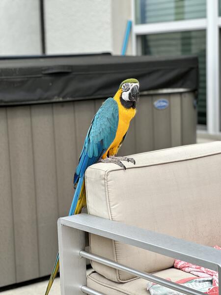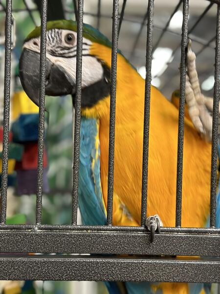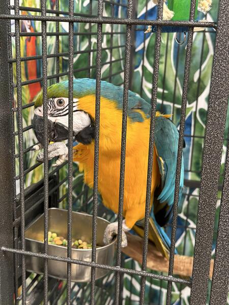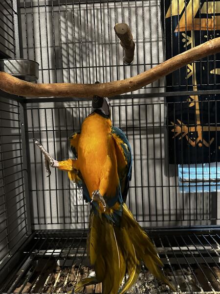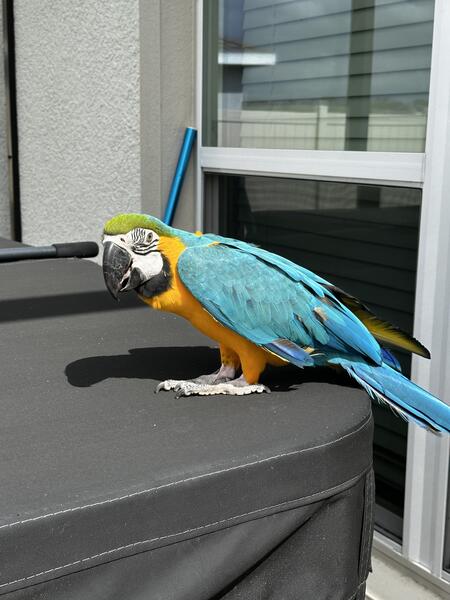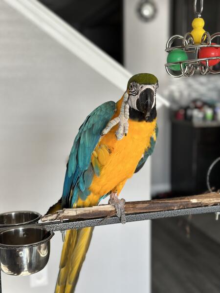 message vykyng about this ad Lucy is believed to be about 3 years old. Her previous owner was an elderly lady who was unable to care for her. Currently, we have encountered a situation that is forcing us to move and our girl cannot join us and because of that she has been handled less. She is an excited and curious bird who loves to play peekaboo and get scratches. Her favorite trick is waving hello. We were told she has a vocabulary of about 40 words and phases although Im not sure weve heard that many from her. She will say hi and hello, wanna go outside, good girl, water/fresh water, step up, back up, I love you, she blows big kisses among other things. She likes to hang by her beak and wave with both feet. She is a typical macaw, shy to speak and play with toys at first but warms up fairly quickly. She sleeps throughout the night. She enjoys playing with kids, she interested in other pets but has never attempted to attack them. She has lived with dogs, cats, fish, and other birds. She comes with her cage. message vykyng about this ad |