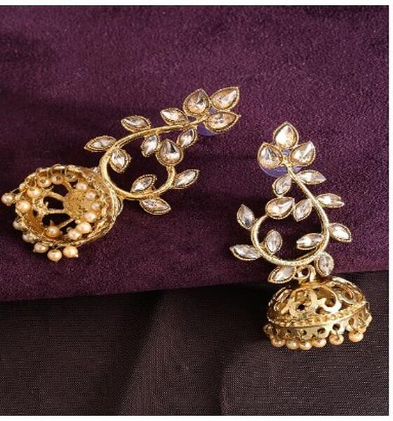 message rohinee about this ad Product Code: 10135443 Gold-plated leaf shaped drop earrings, has kundan Secured with a post and back closure Length: 7 cm Earrings from Priyaasi will add a stylish twist to your jewellery collection. Wear this gold pair with slick black jeans and a pretty top for your next coffee date. Material: Gold-plated brass Stone Type: Kundan httpsmyntr.it/X8qUnbB |