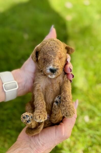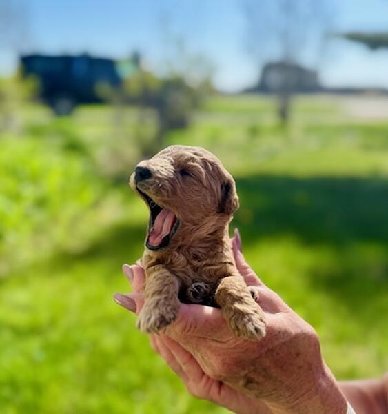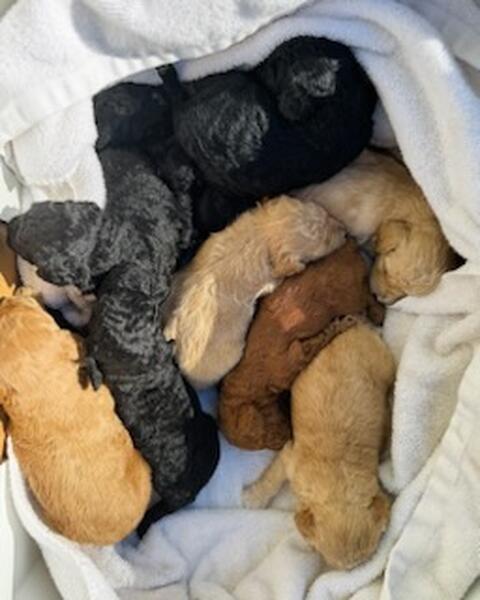 message dali1 about this ad These sweet puppies will be around 15 pounds, there are 4 females and 5 males available.They will have a vet exam and first shots on June 9th and come with a health guarantee.They will be ready for there new homes mid June |