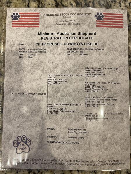 message mackenzie23 about this ad Cross L Cowboys Like Us -Meet Doc! -Red Merle with copper markings -medium low to low energy level -2 Blue Eyes -ASDR registered and AKC registered -15 inches tall -Clear panel through parentage and OFA's -proven stud -live cover only -located near lake city, mn -feel free to ask any questions you may have about Doc! |