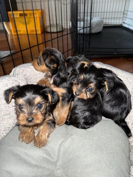 message augietasic about this ad We are thrilled to announce that our sweet Yorkie couple has brought four beautiful puppies into the world two boys and two girls, born into a home full of love, snuggles, and gentle hands. This is our first and last litter, raised right in our living room with all the care and affection we could possibly give. These little ones are being raised as part of our family around people, love, and lots of kisses. Theyre socialized, pampered, and endlessly adored. We are looking for the same kind of forever homes for them: where theyll be just as treasured. 1 girl is reserved! (Left to Right - First Pup) 1 girl is available (Left to Right - Second Pup) 2 boys available! (Left to Right - Third and Fourth Pup ) Photos: 1. The first image is all 4 pups just to warm your heart. 2. The second is tone sleepy pup 3. Third shows them all snuggled 4. Fourth photo shows mom and dad together 5. Fifth shows dad 6. Sixth shows mom Details: Born: May 12, 2025 Ready for adoption: Early August (around 12 weeks old) Puppies will come vaccinated and dewormed Tails will not be docked were keeping these babies natural and whole 2 girls, 2 boys, each with their own sweet personality Mom and Dad are both light silvery Yorkies rare and absolutely stunning in the sun Were not breeders just a Yorkie-loving home sharing this once-in-a-lifetime joy. These puppies will only go to homes where we know theyll be loved like family. Message us for more information or to schedule a visit. We cant wait to introduce you to them! 6477099789 message augietasic about this ad |