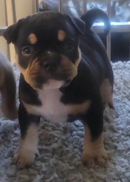Black tri female. 6 weeks old. Abkc registered paperwork. @Derby City Bullies