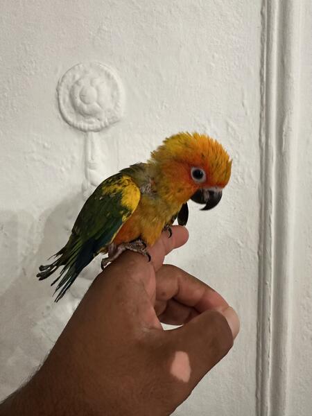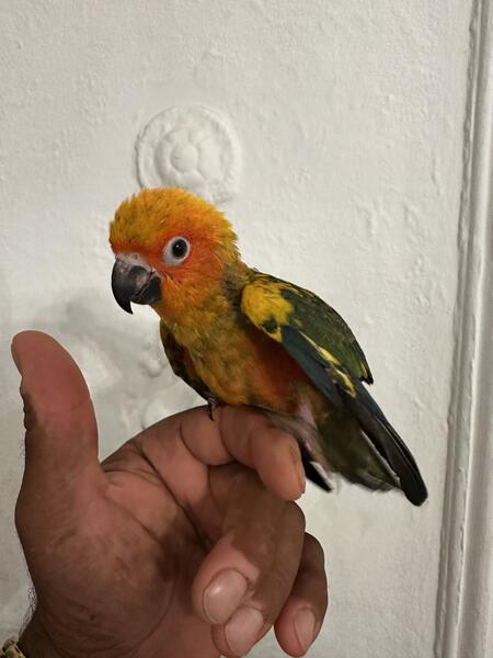 Sun Conure babies looking for new homes. Hand fed, hand raised, no dna. approx 6 weeks in age. Metro Detroit areas