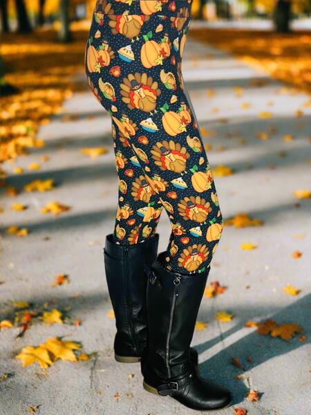 New Womens Fall Thanksgiving Turkey Pumpkin Leggings, Soft As Lularoe, Sizes Os/Tc/Tc2 -- 20.00